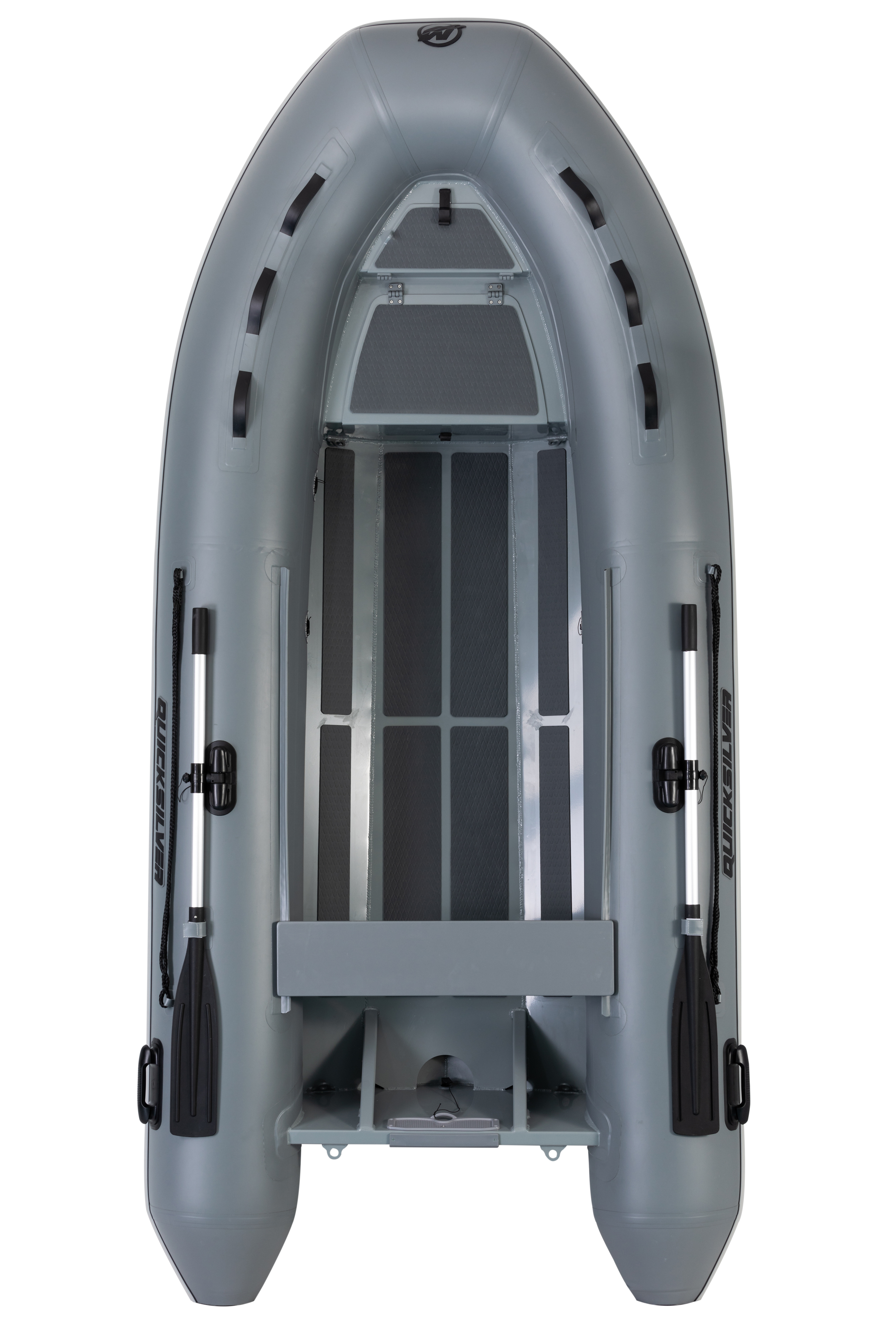 Udarbejdet i robust PVC med dobbelt skrog og plant gulv i selve gummibåden. Gulvet er monteret med skridsikre markeringer og agterspejlet er ekstra forstærket.